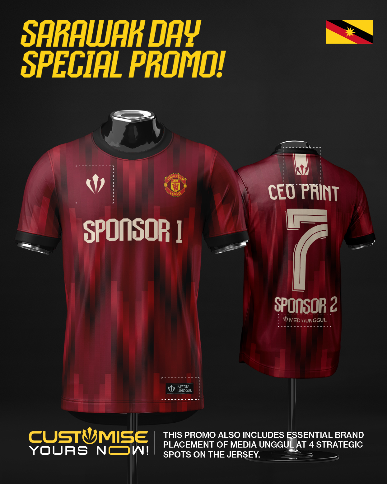 ✅ Your jersey will feature Media Unggul’s premium brand placement at 4 strategic spots—designed to complement your team’s identity without overpowering it.
